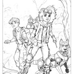 Line drawing of Evin, Kodi and Jet from the cover of the book, at A4 size, ready for colouring.